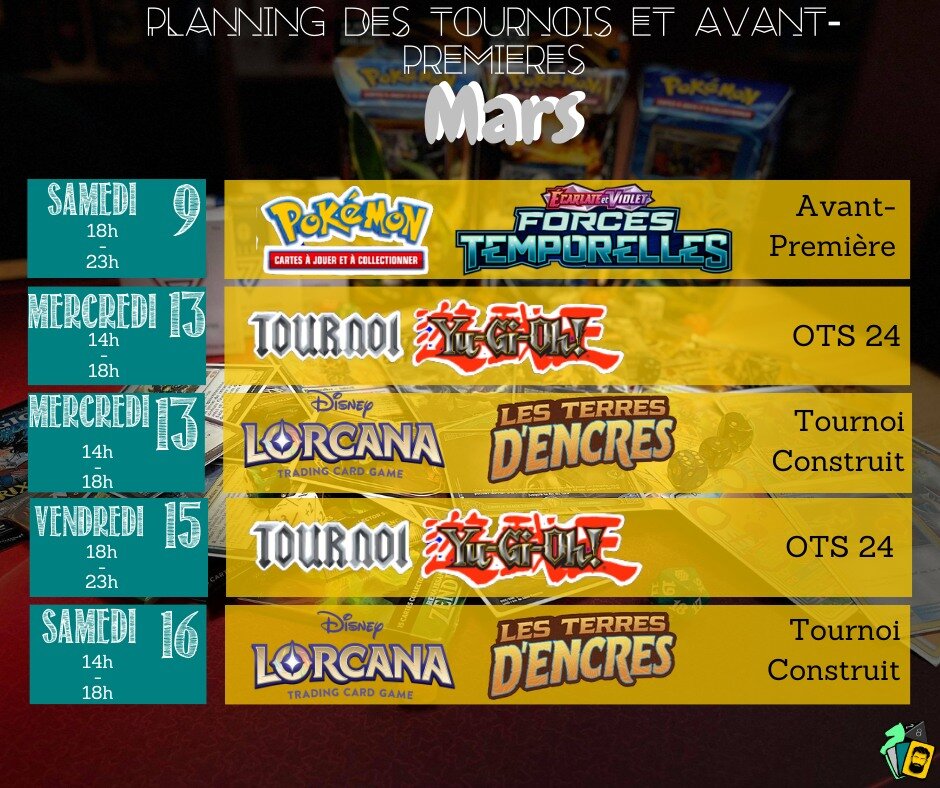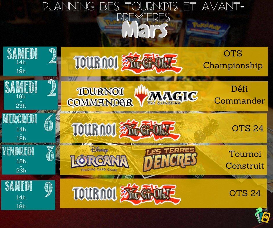 🦇💥 On commence (termine) le mois de mars (février) avec un tournoi Lorcana et un tournoi Yu-Gi-Ho OTS 24 février le mercredi ! 🦇💥