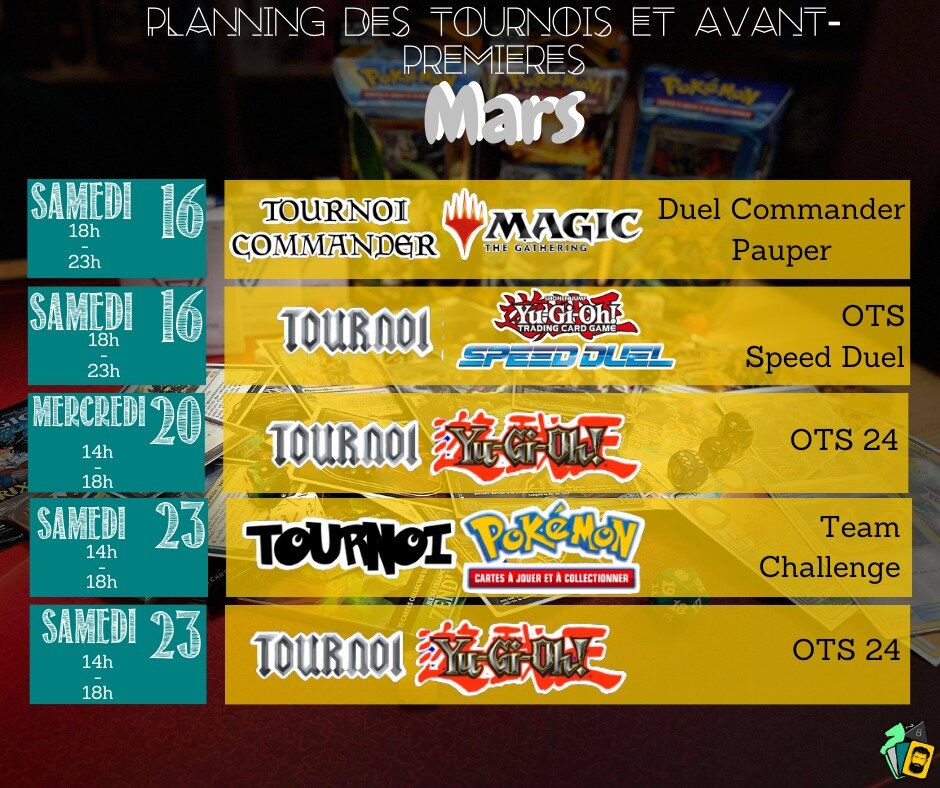 Hey boum 💥 voilà l’arrivée du calendrier des tournois du mois de Mars qui arrive à grand pas ! 😁