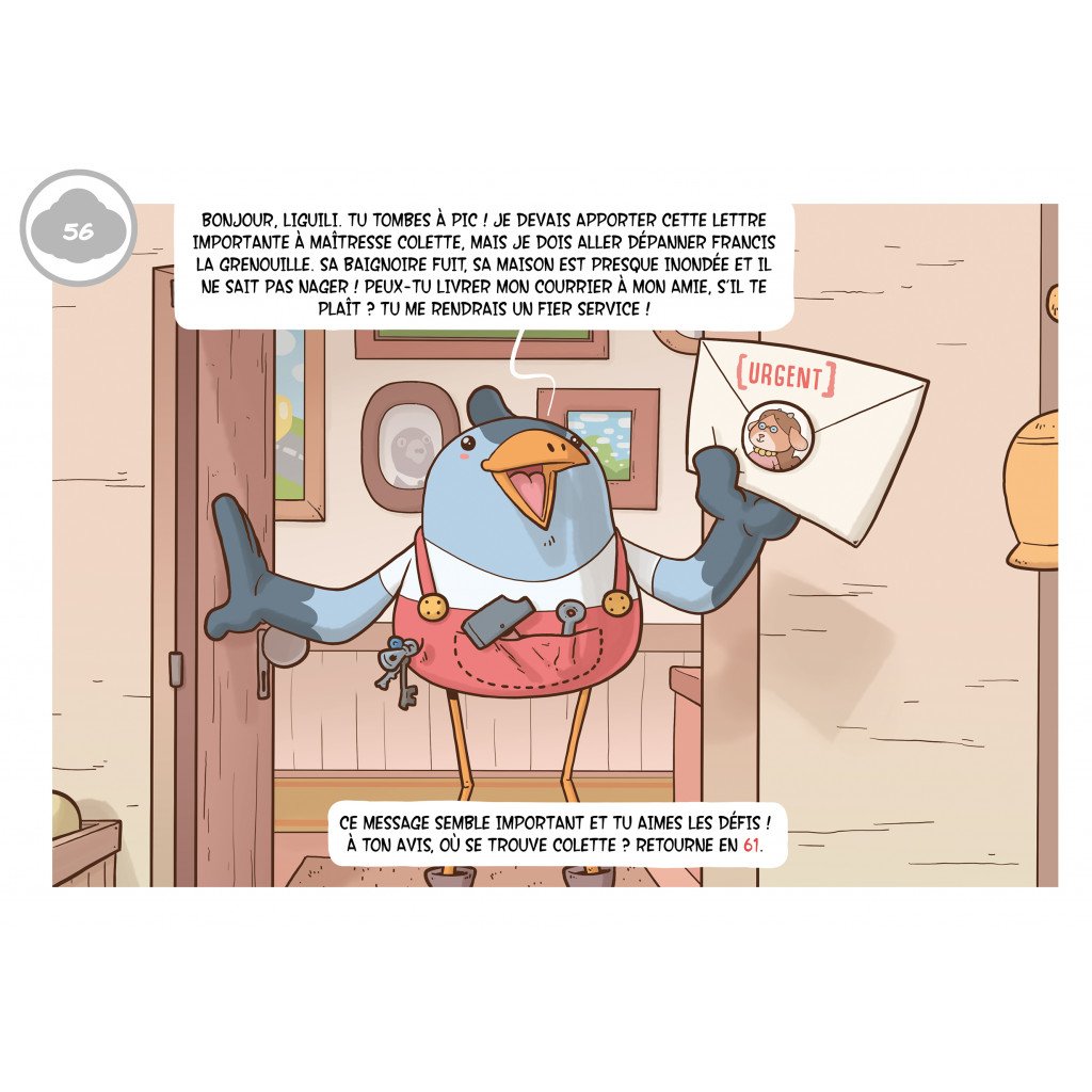 Ses amis les villageois, qui connaissent sa générosité et son goût du défi, lui confient des missions de la plus haute importance. Petit lecteur, petite lectrice, deviens Liguili le temps de cette aventure, et pars le coeur ouvert aux surprises et aux belles rencontres. Choisis tout.e seul.e tes actions et tes chemins en suivant les symboles et les onglets colorés car c’est toi le héros, l’héroïne !