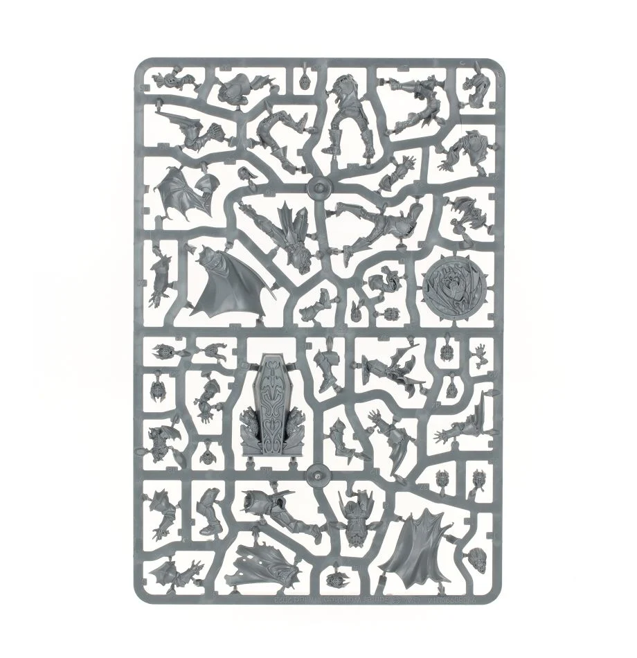 Le kit est composé de 96 éléments en plastique et est fourni avec 14x socles ronds Citadel de 32mm et 1x Planche de Décalcos d’Équipe de Vampires. Ces figurines sont fournies non peintes et nécessitent assemblage – nous recommandons d’employer la Colle Plastique Citadel et la peinture Citadel.