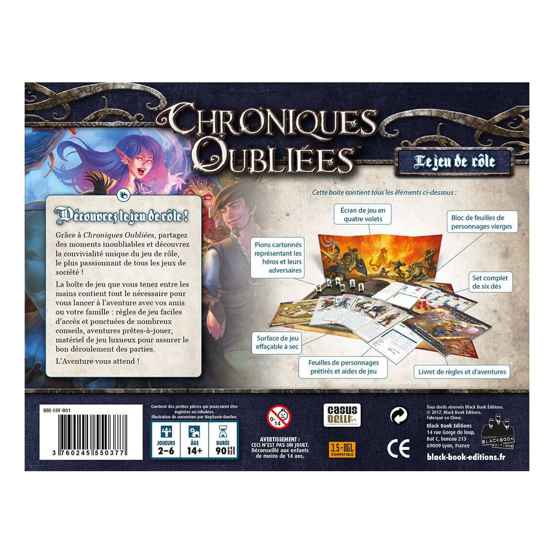 Découvrez le jeu de rôle ! Cette boite de Chroniques Oubliées contient tout le nécessaire pour vous lancer dans l’aventure au travers de 4 scénarios formant une petite campagne ! A partir de 14 ans.