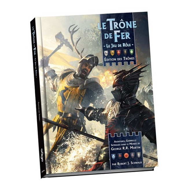 L’Édition des Trônes est la version de luxe du Jeu de Rôle du Trône de Fer. Elle contient la totalité du livre d’origine entièrement mis à jour, mais aussi l’aventure Péril à Port-Réal au grand complet, avec des personnages prêts à jouer.