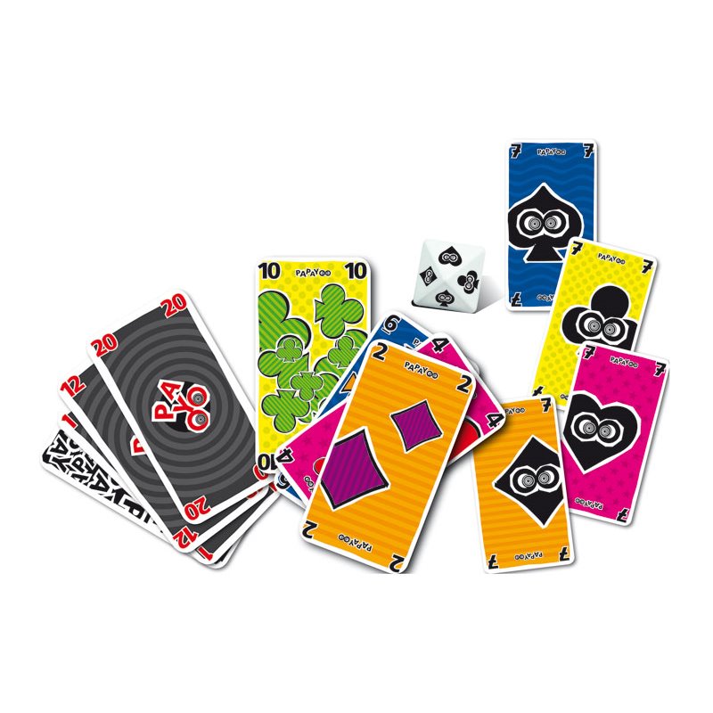 Il n’y a ici ni valets, ni reines, ni rois, mais une cinquième couleur, dite Payoo, plus un drôle de dé.