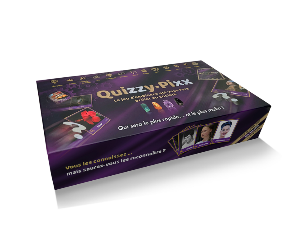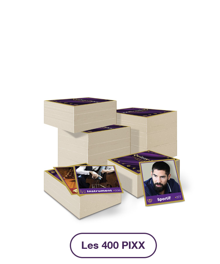 QUIZZYPIXX est un jeu d’ambiance combinant astucieusement identification visuelle, quizz classique, stratégie et mémorisation.