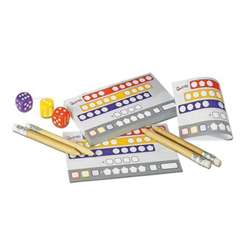 Dans QWINTO, tous les lancers profitent à tous les joueurs, mais chacun s’en sert à sa manière pour compléter sa propre fiche de score.