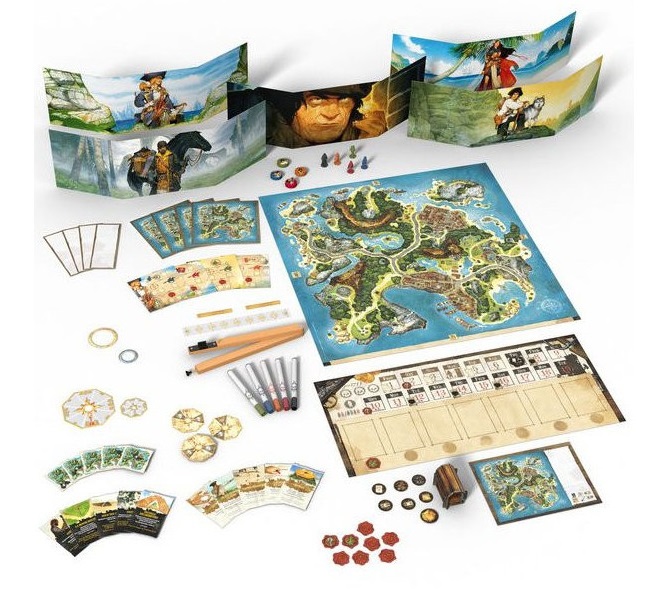 L’Île au Trésor est un jeu de bluff et d’aventures dans lequel un joueur incarne Long John, essayant de duper les autres et de les envoyer sur de fausses pistes…