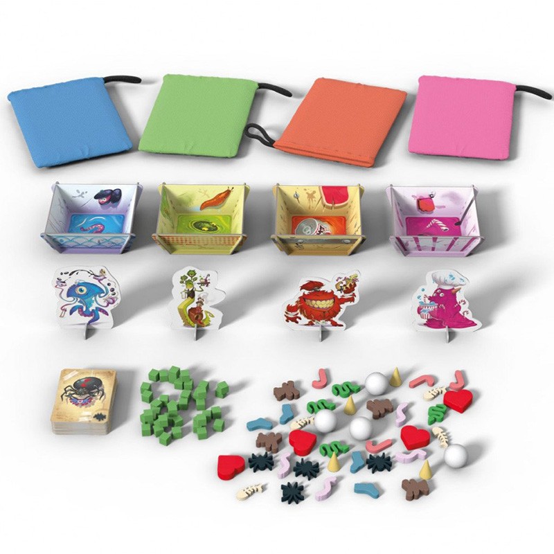 Les monstres ont toujours faim et ne s’éloignent jamais d’un sac plein de provisions, pour pouvoir préparer une délicieuse soupe en quelques instants. Mais seulement s’ils arrivent à trouver rapidement les ingrédients de la recette de leur monstrueux livre de cuisine ! Dans Monster Soup, chaque joueur doit trouver les bons ingrédients dans son propre sac, en utilisant uniquement le toucher ! Globe oculaire, araignée, ver de terre, tous les ingrédients ont une forme spécifique, que vous devrez reconnaître pour suivre la recette !