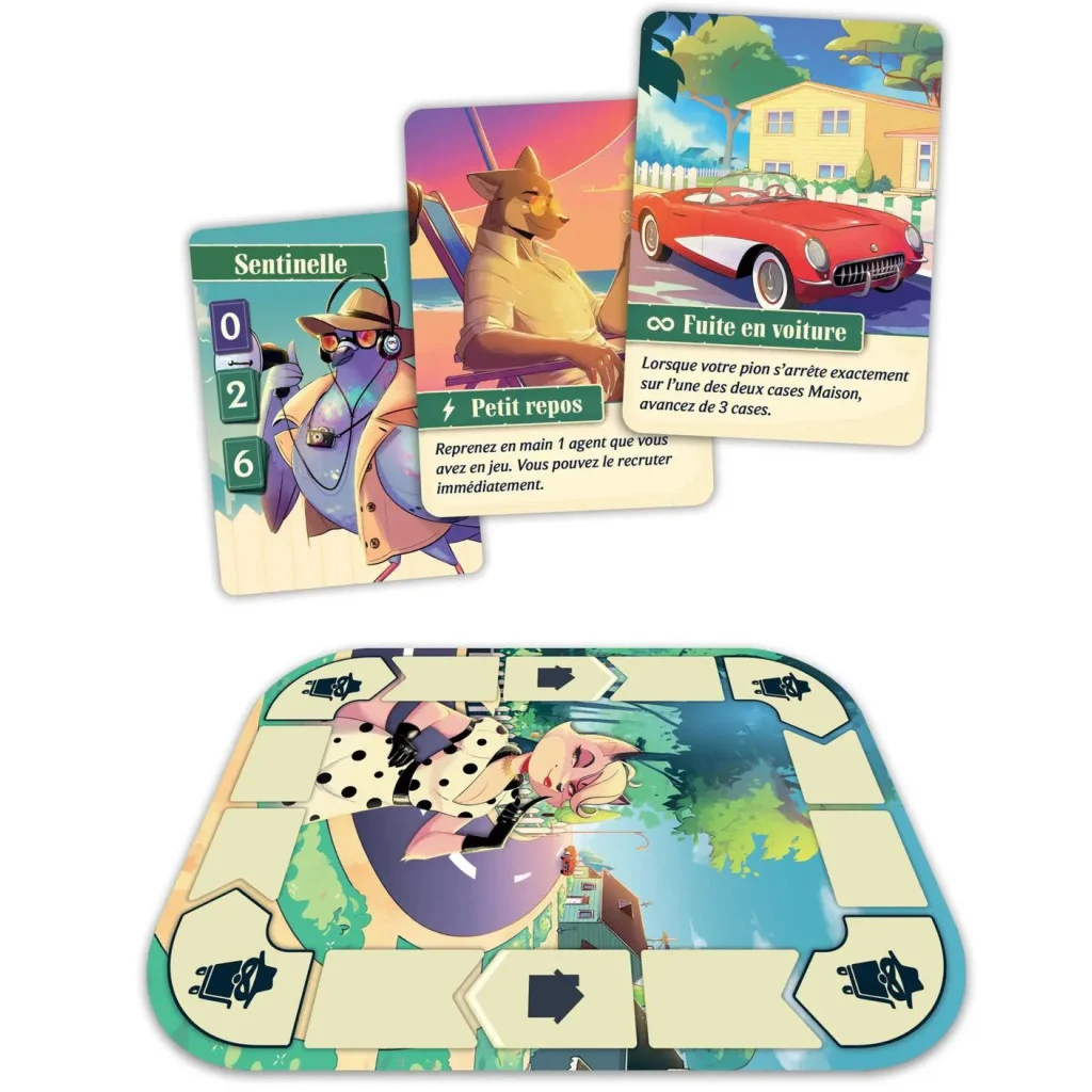 Magnifiquement illustré par Fanny-Pastor Berlie, le jeu donne vie à un quartier excentrique d’animaux espions. Le jeu comprend plus de 50 cartes, un plateau de jeu personnalisé et des meeples.