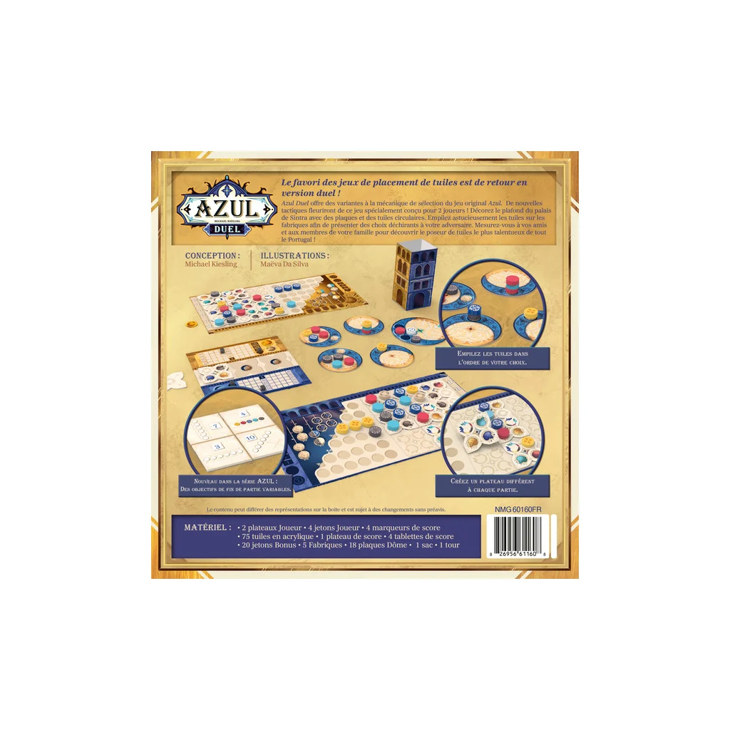 Ce jeu stratégique pour deux joueurs conserve l’élégance du jeu Azul original tout en y ajoutant une nouvelle dimension tactique. Sélectionnez soigneusement les tuiles et composez les motifs parfaits pour déjouer votre rival et remporter la victoire !