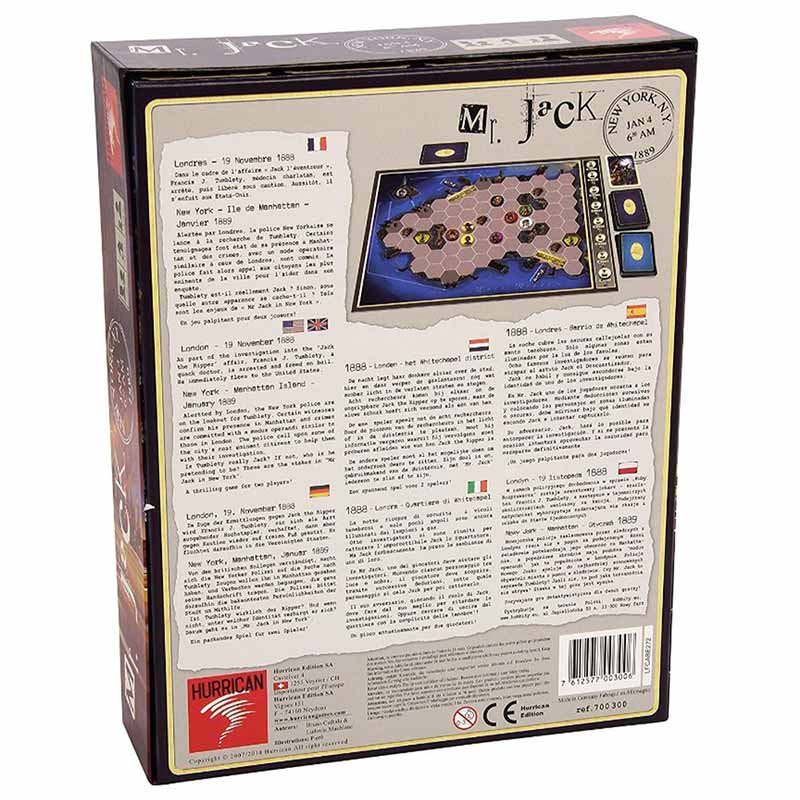 Après Mr Jack, Ludovic Maublanc et Bruno Cathala nous content la suite des aventures de Jack l’éventreur, exilé dans la Grosse Pomme dans Mr Jack à New-York.