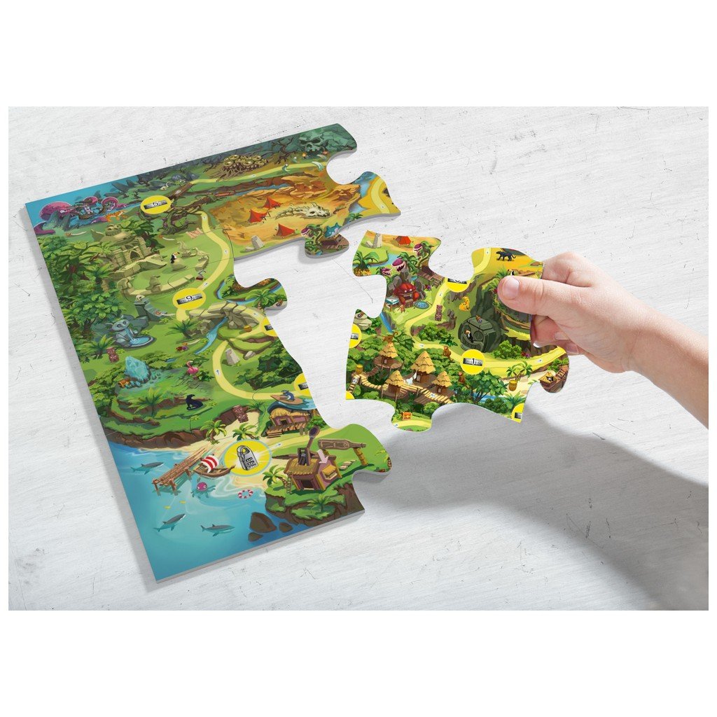 Contenu: 1 coffre à trésor, 1 cadenas à code, 1 boîte à énigmes, 1 chemise cartonnée, 12 cartes-énigmes, 9 pièces de puzzle (qui forment une carte au trésor une fois assemblées), 1 figurine, 1 règle du jeu.