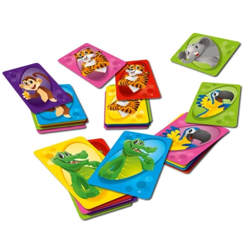 Un jeu de cartes rapide pour passer un bon moment. Poser au milieu de la table autant de cartes de la même couleur ou du même type d’animal que possible.