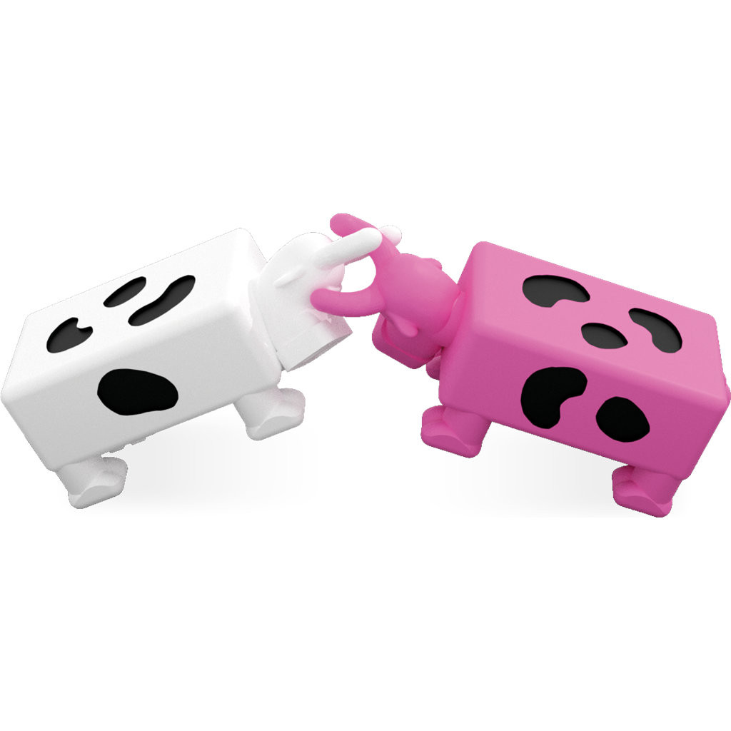 Cornes contre cornes, place au duel avec de véritables vaches-dés ! Poussez chaque vache l’une contre l’autre jusqu’à ce qu’elles sautent et atterrissent sur un flan… puis comptez les taches. Celle qui en a le plus remporte le duel !