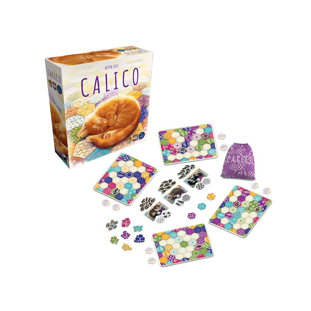 Dans Calico, les joueurs, en compétition les uns contre les autres, vont tenter de composer le quilt le plus douillet en draftant et en plaçant des tuiles de tissus de différentes couleurs et de différents motifs sur leur Plateau de quilt.