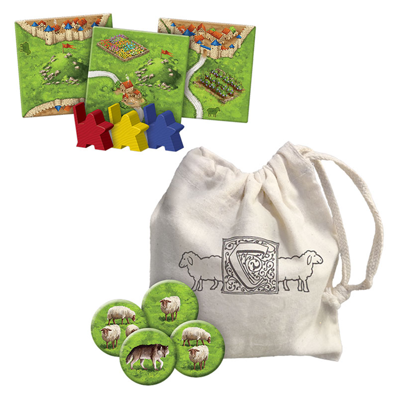 Moutons & Collines est une extension pour Carcassonne qui met à l’honneur les verts pâturages de vos tuiles terrain. Elle apporte trois nouveautés majeures :