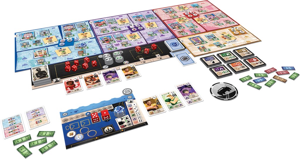 Grâce à des règles intuitives et fines, vous pouvez recruter des Spécialistes, du perceur de coffre à la hackeuse, qui pourront déployer leurs compétences tout au long des 12 manches. Lancez vos dés pour les enrôler et les améliorer. Une fois votre équipe au top, tentez un casse dans une ville dans laquelle vous n’avez pas sévis !