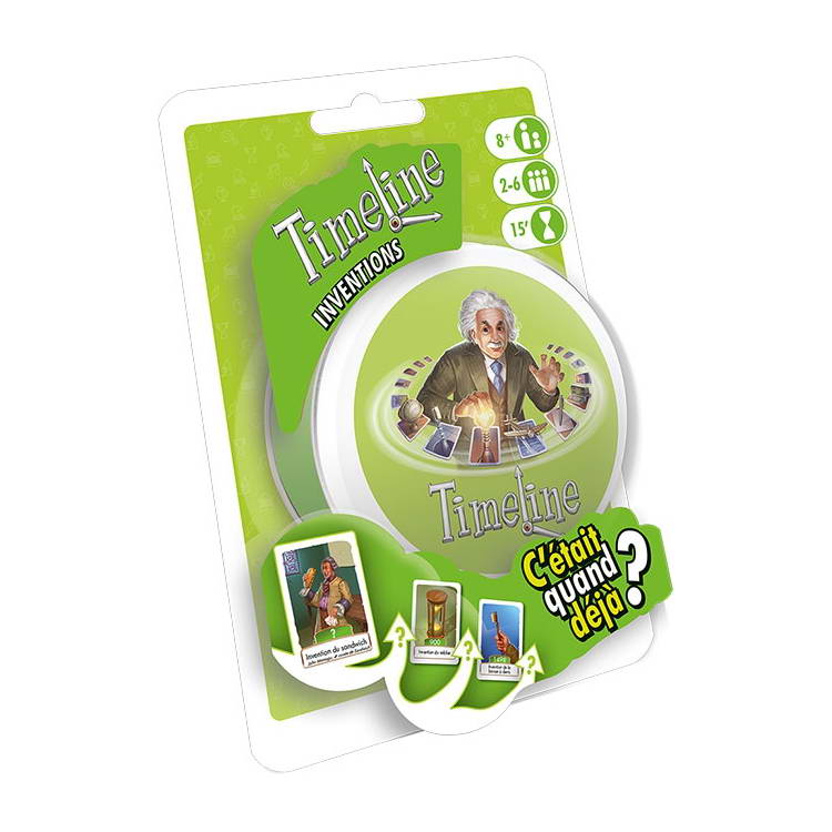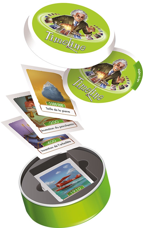 Timeline est un jeu de cartes rapide et amusant avec des règles d’une grande simplicité. En famille ou entre amis, amusez-vous à replacer correctement les cartes dans la ligne du temps. Mobilisez vos connaissances et votre intuition ! Quel que soit le niveau des joueurs et pour toutes les générations, rebondissements et étonnements vous permettront de passer un bon moment en jouant avec le temps.
